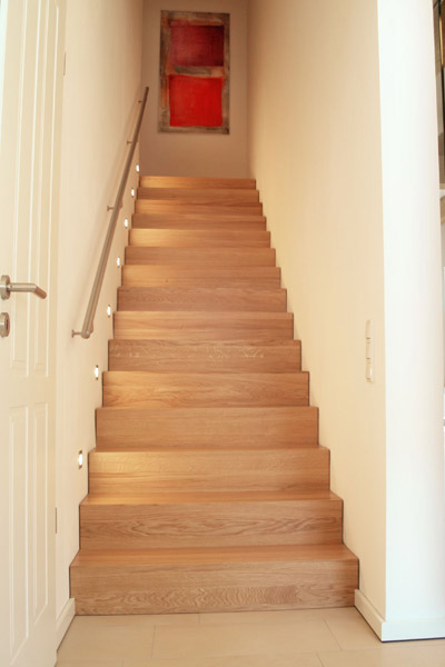 Die Oberflächen werden Ihren Wünschen entsprechend, transparent, farbig, gebeizt, lasiert, oder in geölte bzw. gewachste Ausführung behandelt und durch eigene Mitarbeiter vor Ort eingebaut. Jede von uns gefertigte Treppe ist ein Unikat und kein Industrieprodukt. Hierzu zählen:
